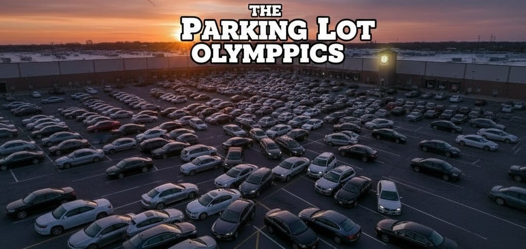 We call it the Hagerstown Parking Lot Olympics—a daily competition where dozens of cars, trucks, and pedestrians compete for the same square footage of asphalt—a competition we can blame exclusively on scheduling.